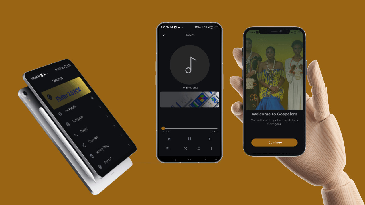 GospelCM is a streaming gospel music platform. Users can download and stream music from the website directly in the app. The apps query songs from your device and display music downloaded from gospelcm.com. Users can also play local music from their phone using the app player, with a real-time notification bar showing the current playing music. An admin version of the platform, built using NextJS, helps manage app users, ads, and send custom notifications to the user.